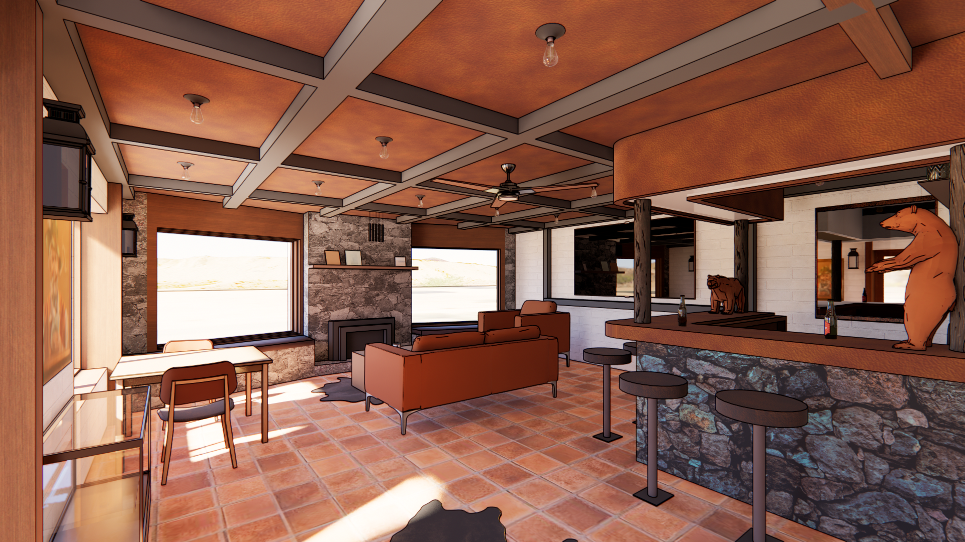 A centerpiece of this transformation is the "Bear Bar," a room with some history. It occupies the space that was once the garage, where a black bear famously took up residence for a few days, separated from the main home only by a sheet of plywood. Now a cozy bar, the room showcases custom, hand-carved bears, reflecting the owners' appreciation for local history and the rugged outdoors.